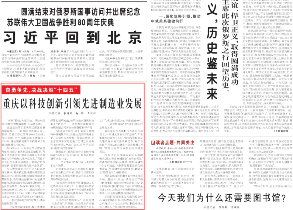 5月11日,,,,《人民日报》在头版要闻以《重庆以科技创新引领先进制造业发展》为题,,,,报道了重庆市加快打造国家重要先进制造业中心情况,,并以忽米网与尊龙时凯合作搭建的动力系统协同共生未来工厂为例,,介绍...